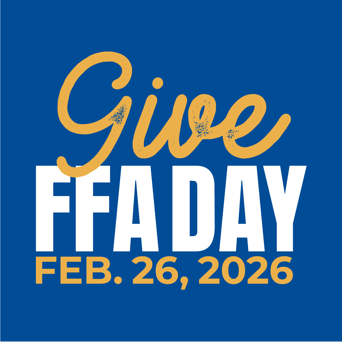 On Feb 26, 2026, we will celebrate Give FFA Day! Give FFA Day is a 24-hour fundraising effort that unites the FFA community in support of the next generation of leaders who will change the world. Every gift makes a difference.